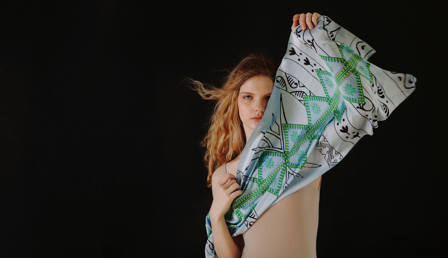 Colorful Silk Scarf with Ethnic Symbols – Handcrafted Ukrainian Design