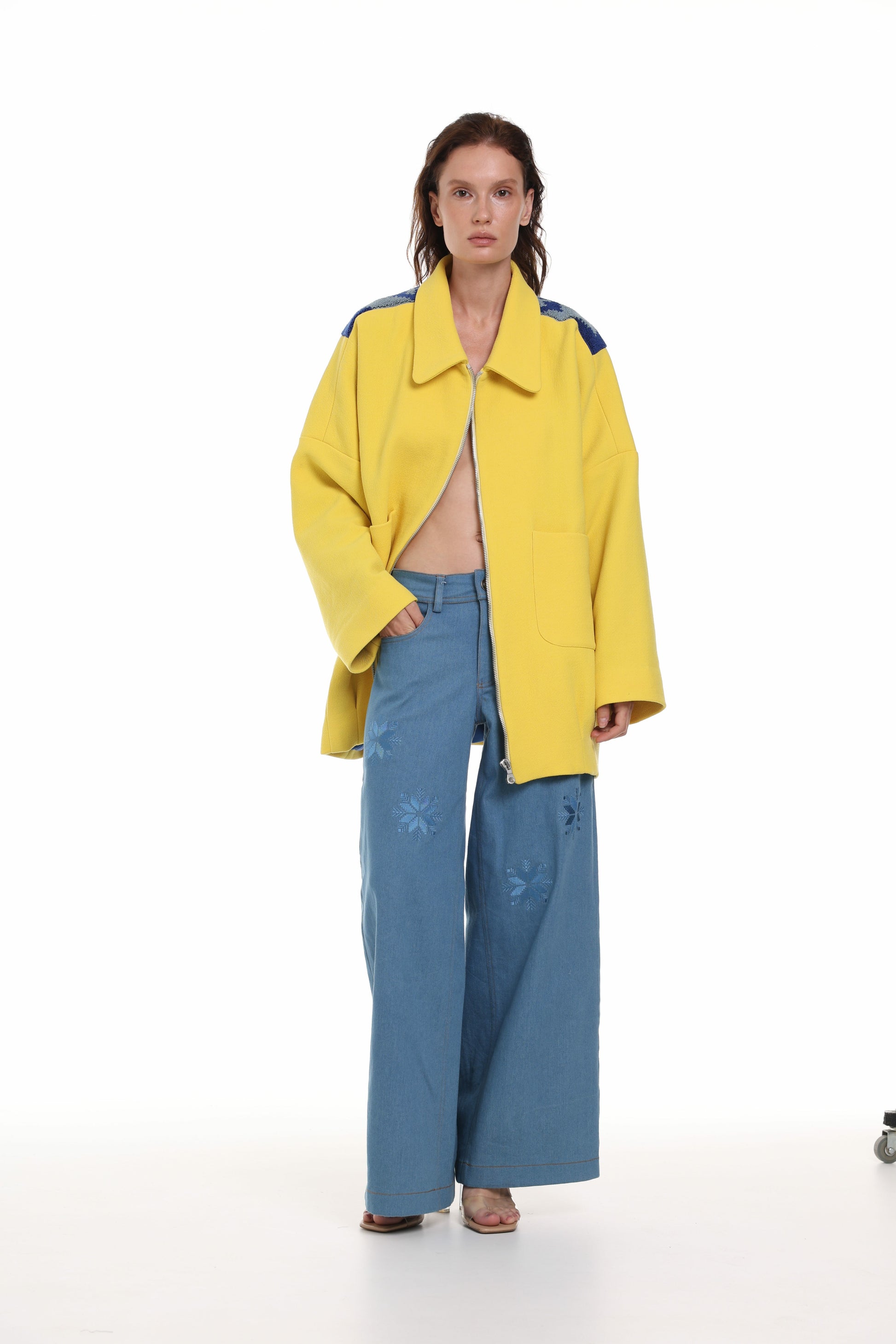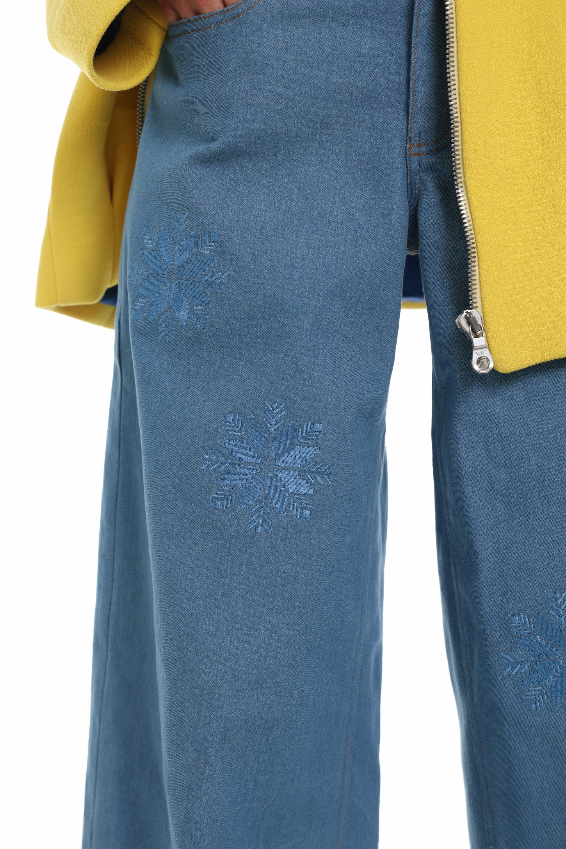 Модель виконана у світло-блакитному відтінку з тон-в-тон вишитими орнаментами, що нагадують стилізовані зірки. Візерунок не контрастний — він відкривається в русі та світлі.