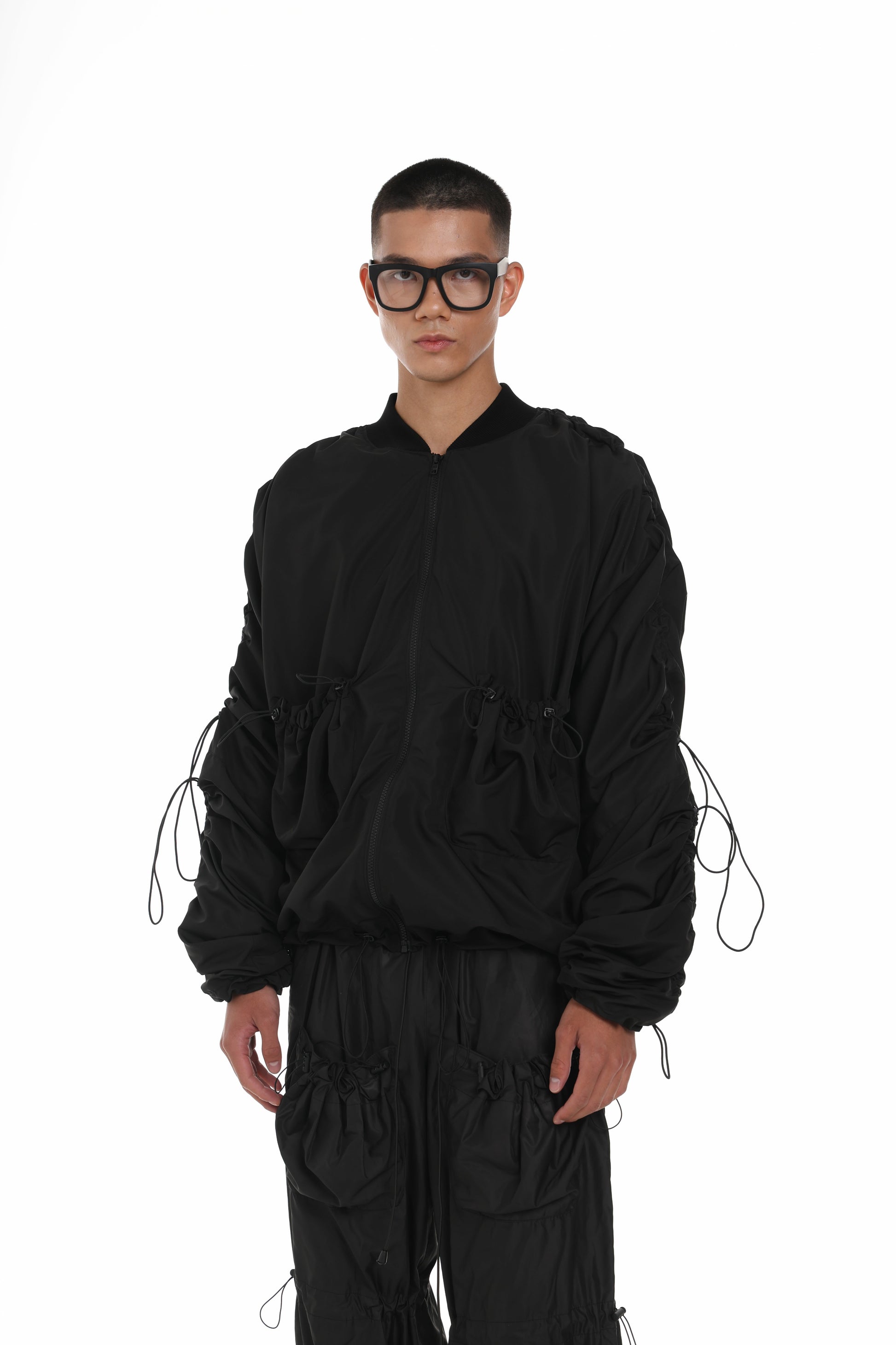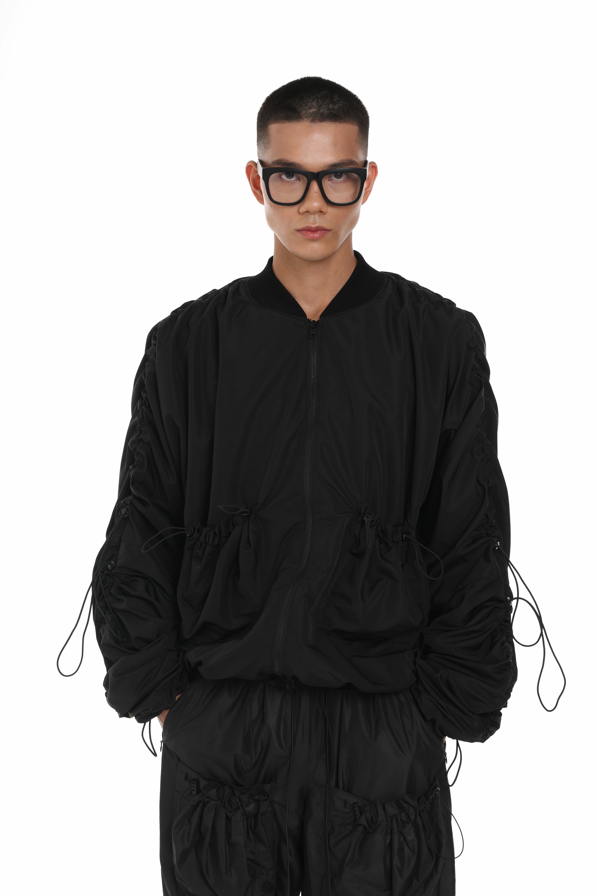 Функціональний бомбер із застібкою на тракторну блискавку. Модель доповнена еластичними елементами, стоперами та люверсами, що формують виразний силует і додають регульованості.